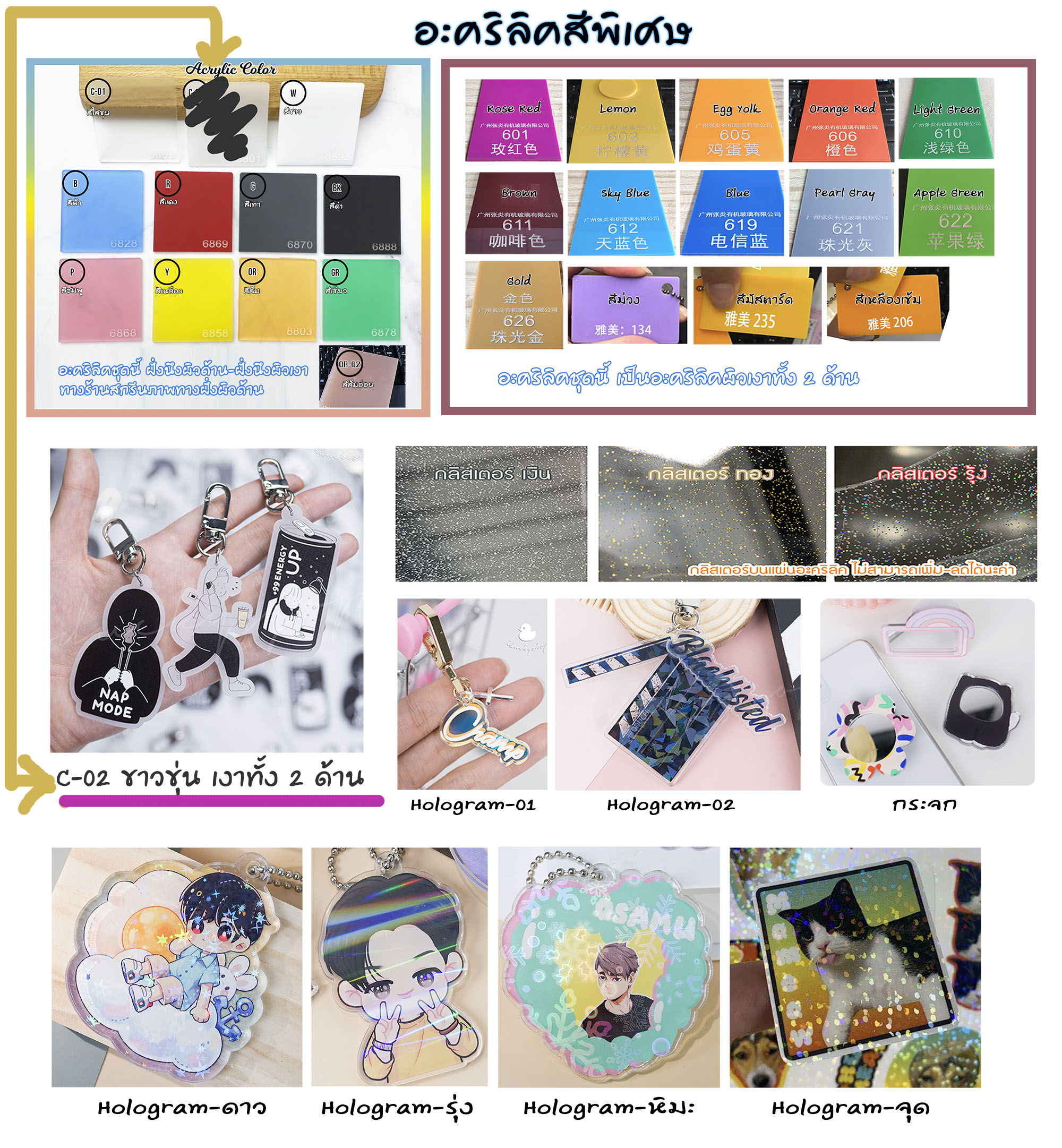 - รับทำพวงกุญแจอะคริลิค มีเนื้ออะคริลิคให้เลือกค่อนข้างเยอะ