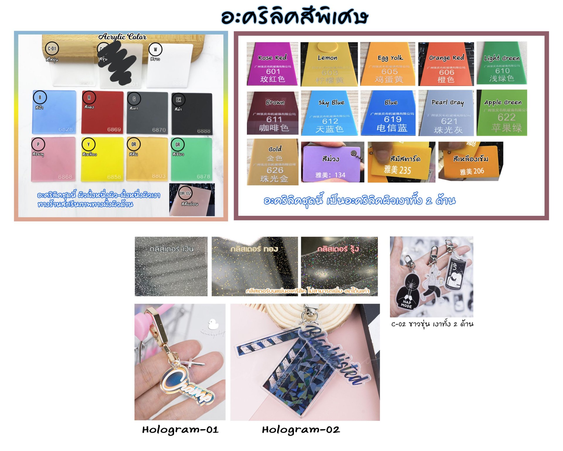 อะคริลิคแบบต่างๆของทางร้าน