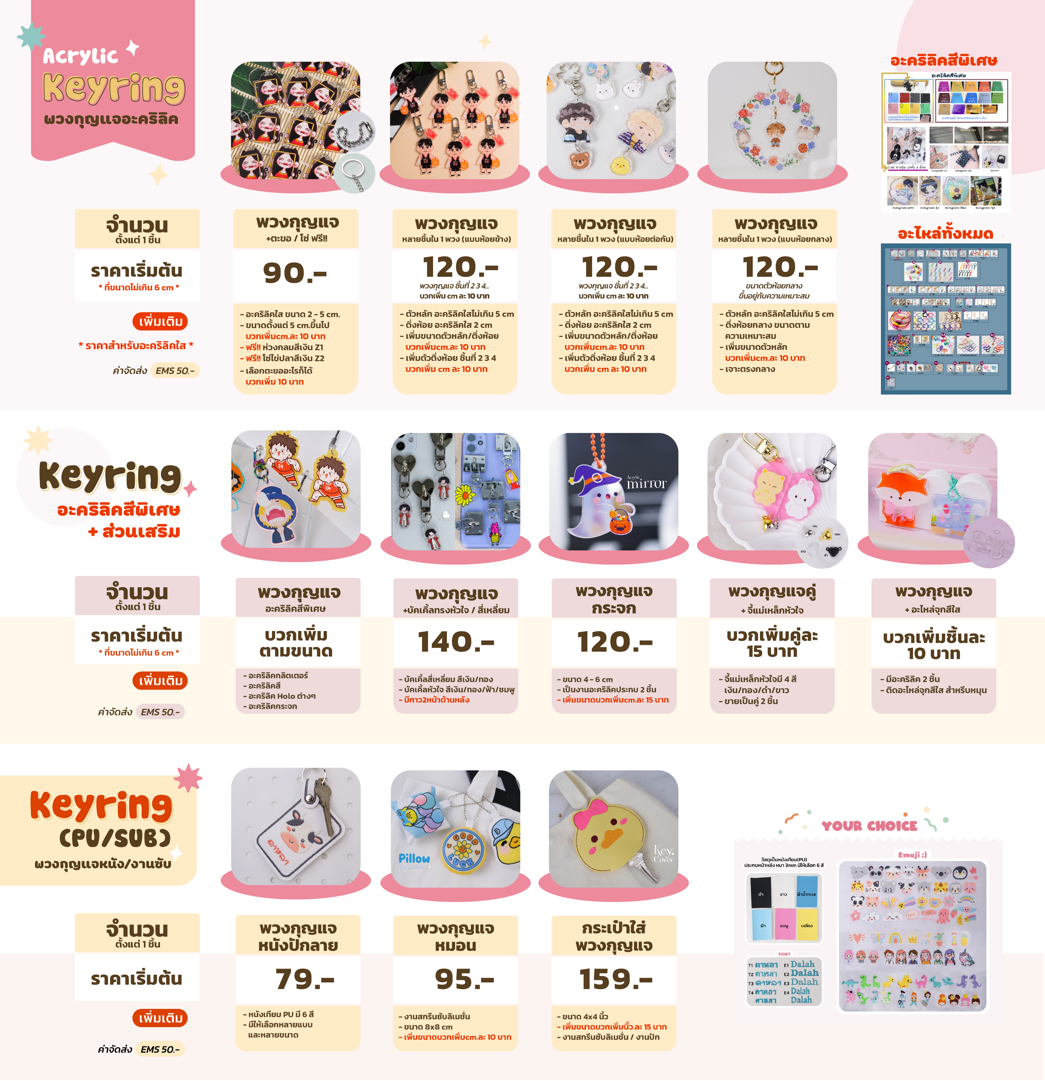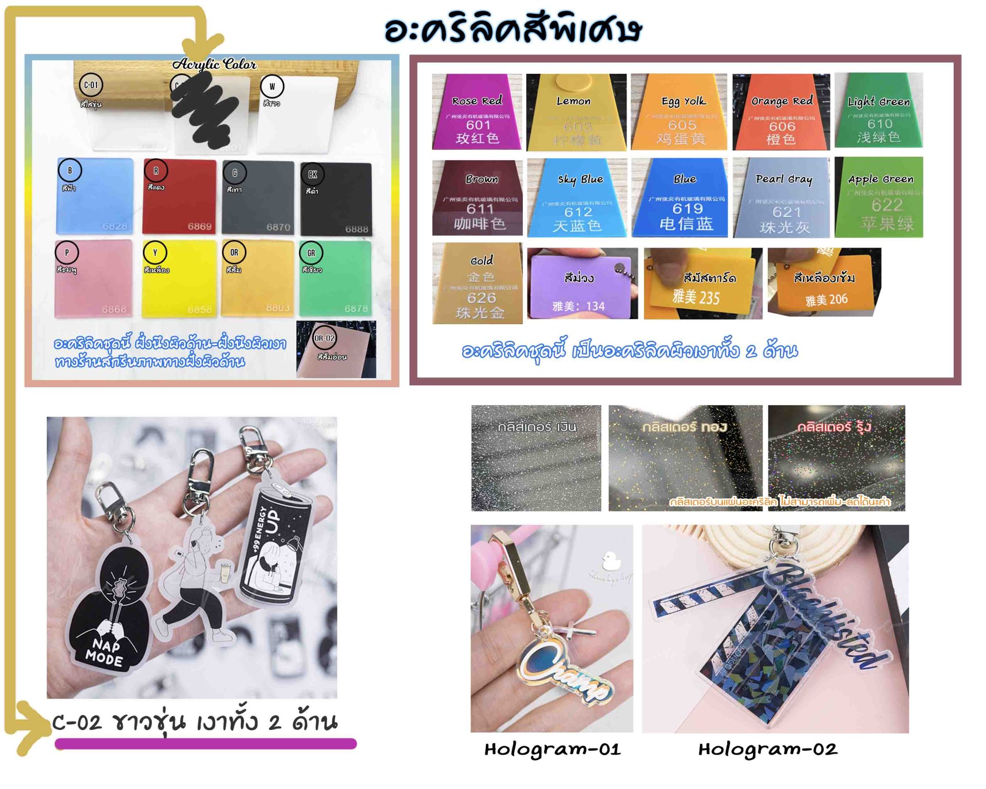 - รับทำพวงกุญแจอะคริลิค มีเนื้ออะคริลิคให้เลือกค่อนข้างเยอะ