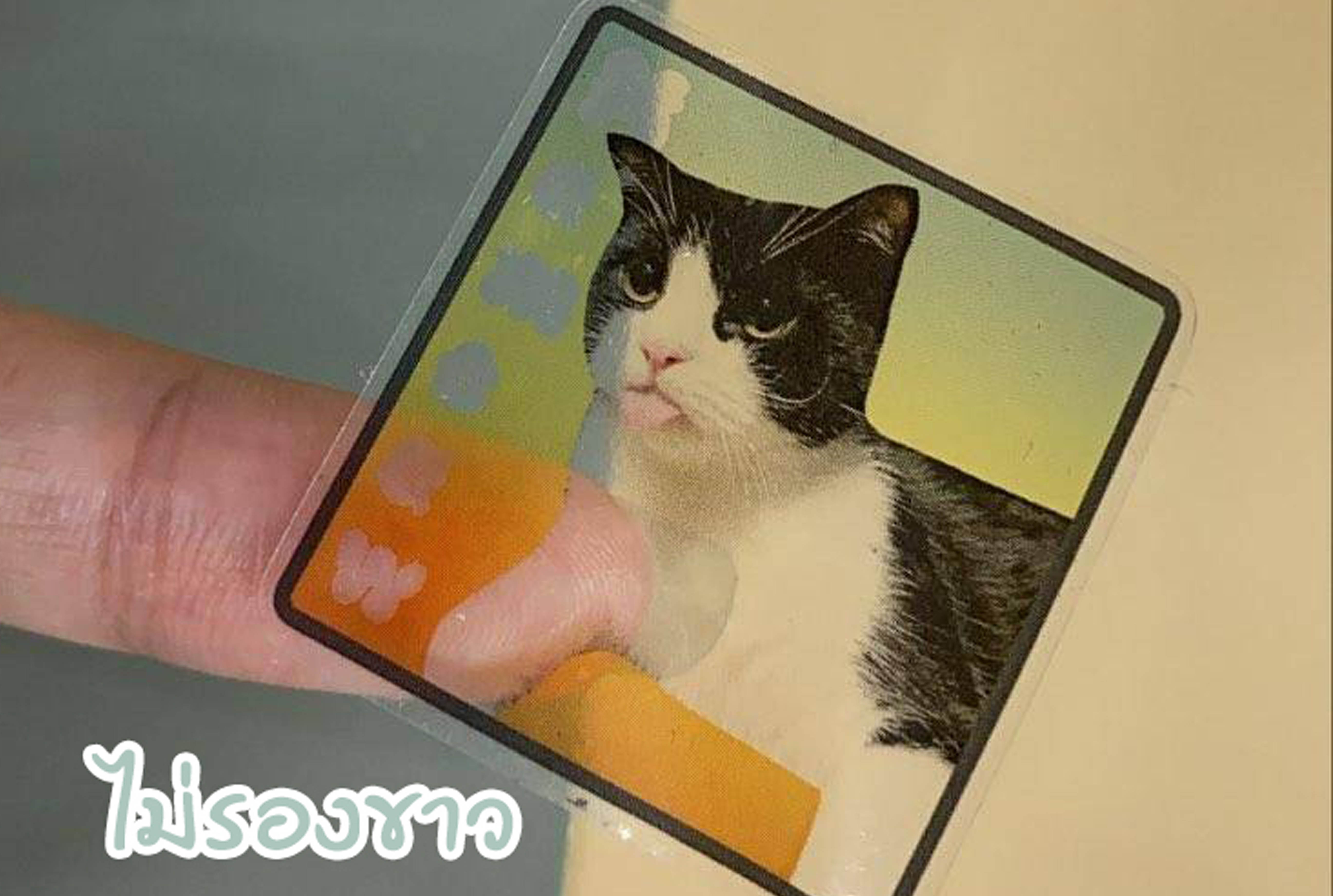 รายละเอียดงานพิมพ์สติ๊กเกอร์ใส พลาสติกใส PETใส พิมพ์รองขาว